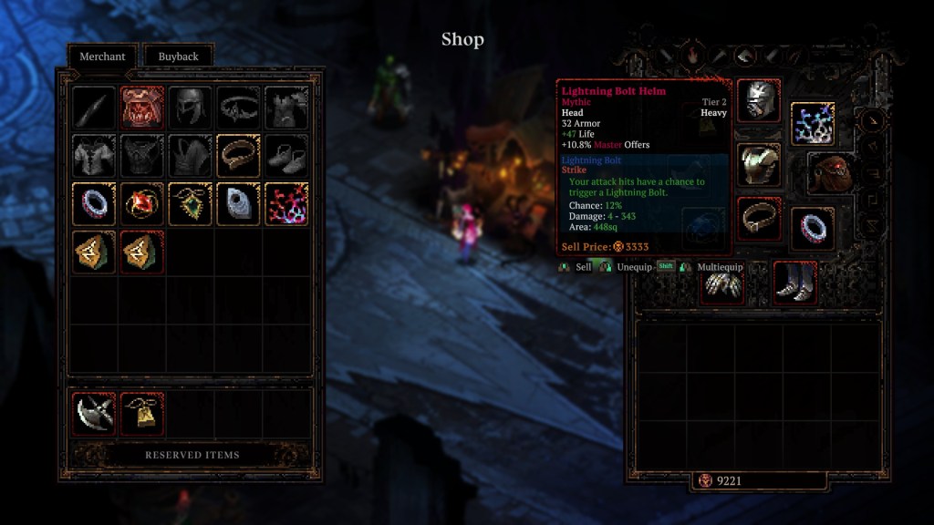 Şimdi gelelim Death Must Die ve bu türde çıkış yapan oyunların en önemli farklarından bir tanesine, Itemization. Oyunda eşyalar büyük bir öneme sahip ve bu eşyaları elde etmenin birden fazla yolu var. Yaratıklar, sandıklar ve boss’lar şansınıza göre çeşitli eşyalar düşürüyor. Bu eşyaların özellikleri tamamen şansınıza bağlı ve gerçekten fark yaratan bir eşya düşürdüğünüzde oyunun keyfini katlıyor. Bazı eşyalar oyundaki becerileri otomatik ve belli sürelerde kullanmanızı sağlayarak size büyük avantajlar kazandırıyor. Oyunda ilerleme hissini en çok aldığım mekanik bu oldu. Eşya çeşitliliği de gerçekten şaşırtıcı, aksesuarlar, zırhlar, kasklar ve kolyelere kadar bir sürü eşyayı toplayıp istediğiniz bir kombinasyon üzerinden karakterinizi geliştirebiliyorsunuz. Düşürdüğüm eşyalar ve bu eşyalar üzerinden kafamda oluşan karakteri zamanla oturttum ve oyunun sonunu birden fazla kez gördüm bu sayede.