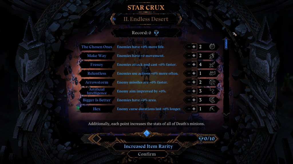 Oyunda belli başarımları elde etmek için oyunun size sunduğu bazı challenge’ları da tamamlamanız gerekiyor. “Belli bir beceriyle ve belli bir karakterle 5000 düşmanı öldür” gibi challenge’lar sayesinde kendinize ekstra hedefler de koyabilirsiniz. Ayrıca, oyun çok kolaylaşmaya başladıysa ve daha iyi eşyalar düşürmek istiyorsanız, oyunun zorluğunu da artırabiliyorsunuz. Zorluğu artırdıkça, daha kaliteli eşyalar düşürme şansınız da artıyor. Zorluk ayarlamaları da gerçekten detaylı ve keyifli mücadeleler sunuyor.