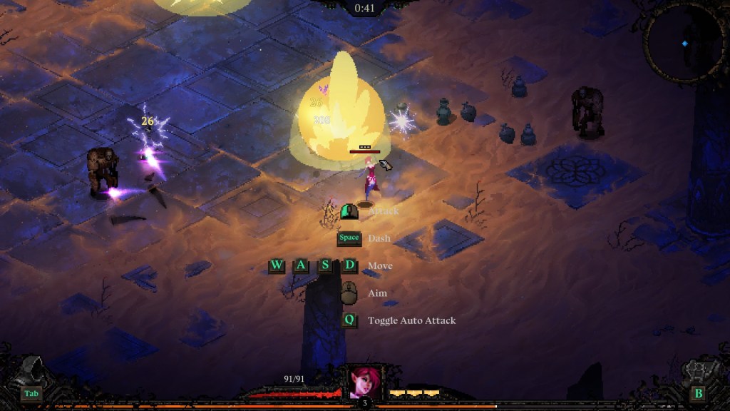 Hayatta kalmaya devam ettikçe hem düşmanlar, hem biz güçleniyoruz. Güçlendikçe de gelen kalabalık grupları önümüze katıyoruz. Oyun muazzam müzikleri ve ses tasarımı ile her savaşın ayrı bir keyifli olmasını sağlamış. Gerçekten ses tasarımına bayıldım bu oyunun, sanat konusunda becerikli bir geliştirici ekip olduklarına hiç şüphe yok. Boss fightlar da oyunun bir başka bayıldığım mekaniği, boss’lar gerçekten güzel mekaniklere sahip ve oyuncuyu kıstırmayı başarıyorlar. Çok tehlikeliler ve yapabilecekleri bir kaç hareketleri oluyor mutlaka. Ayrıca oyunda en iyi eşya toplama yöntemi de bu boss’ları alt etmek. Oyunun döngüsü de böylelikle tamamlanıyor. Başla>hayatta kal>boss’u kes>öl veya öldür>lobiye dön>eşyalarını düzenle, becerilerini düzenle>başla. Söylemeliyim ki, keyifli de bir döngü gerçekten.