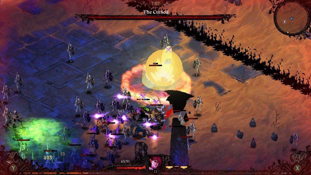 Savaş alanında çeşitli yerlerde rastgele bonuslar bulunuyor, bunları almak için sürekli hareket etmeniz gerekiyor. Aksi takdirde almanız gereken snowball etkisini alamıyor ve ileride gelecek düşmanları daha hızlı yok edemiyorsunuz. Her seviye atladığınızda, ilk olarak Hades’le ünlenen bir diyalog ekranı açılıyor. Düşmanımıza karşı bize yardımcı olan figürler hem çok çeşitli, hem de çok keyifli karakterler. Ayrıca her biri bize farklı beceri türleri sunuyor. Bu becerileri geliştirdikçe gücün doruklarına ulaşıyor, düşman gruplarını yok ederek boss’lara doğru ilerliyoruz. İlerliyoruz dediysem, geziyoruz işte. Gittiğimiz bir rota yok neticesinde.