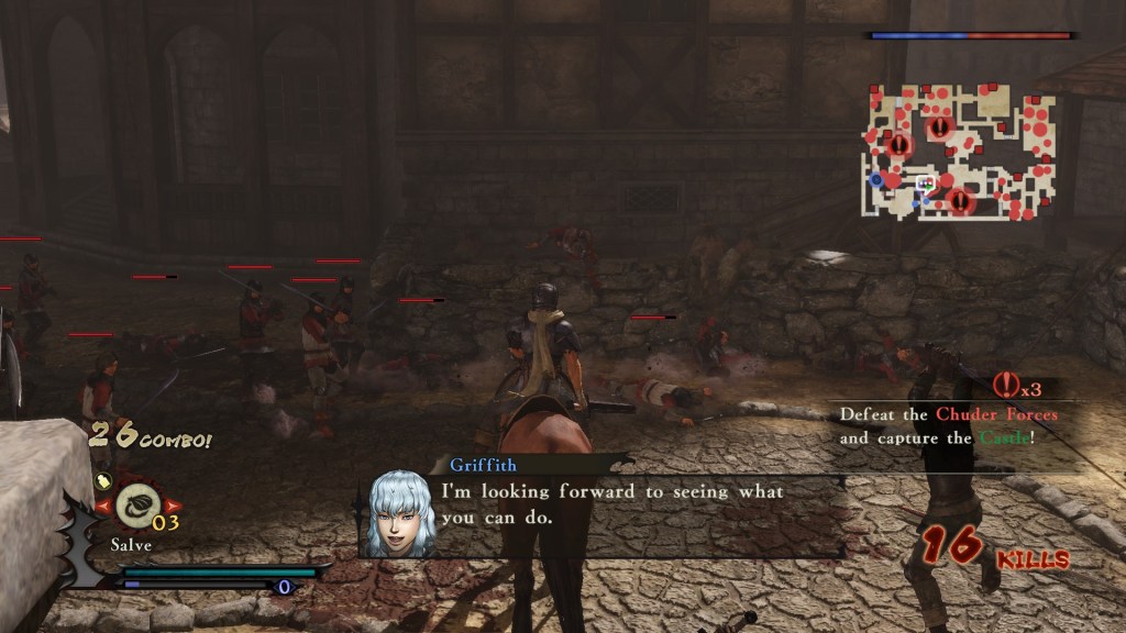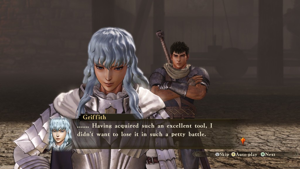 Sanıyorum tek aldığım iyi hissiyat, fanboy olmamdan kaynaklı Griffith, Casca, Judeau gibi karakterleri kontrol etmiş olmanın verdiği o buruk his olabilir. O da çok iyi hissettirmedi ama, ne yaparsın be. Griffith olarak adam öldürdüm, ilk bir beş on dakika keyif verdi işte. Ya hiç o keyfi de tadamasaydım? Valla, sağ olsun yapımcı ekip, en azından Griffith’i sol analog ile yürütüp, Xbox kontrolörümdeki X tuşuna defalarca bastım. Bu bir karakteri deneyimlemenin en iyi yolu değilse nedir bilmiyorum.