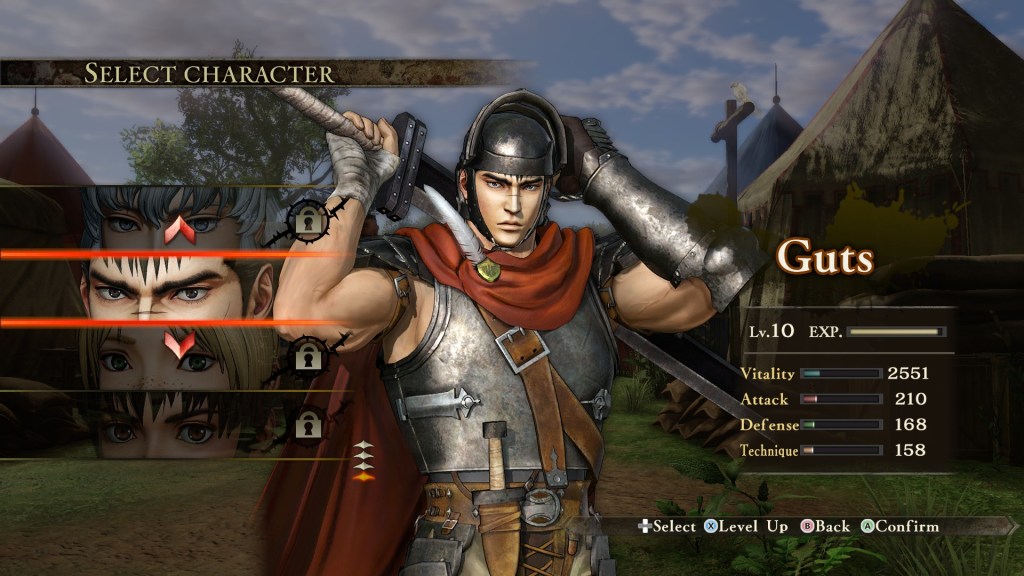 Oyunun ilerleyişi yine türün genelde tercih ettiği şekilde, bir ara sahne izliyoruz, daha sonra bölüm seçme ekranı geliyor, bölüm için hazırlıklarımızı yapıyoruz, karakterimizi seçiyoruz ve düşmanları havalara uçurarak bölümü bitiriyoruz. Bazı haritalarda hikaye gereği karakter seçmemize izin vermiyor oyun, fakat çoğu haritada Guts, Griffith, Casca ve Judeau dörtlüsünden birini seçerek savaşabiliyoruz. Guts ekibin ağır saldırı yapan, ama vurdu mu uçuran tipi. Griffith ve Casca hızlı, çevik ve Guts ile kıyaslandığında düşmanlara daha az hazar verseler de düşmanların arasında şip şak gezerek en azından hareketlilik ile avantaj sağlıyorlar. Judeau ise ekibimizin ninjası konumunda, daha çok bıçak atarak ve uzaktan saldırarak kendi farkını ortaya koyuyor. Oyunun ilerisinde bir bu kadar daha karakter açılıyor ve biraz daha farklı özellikler ortaya koyan karakterlerimiz oluyor. Fakat genel olarak oyunun türünden dolayı ne olursa olsun zaten bu farklılıkların pek de önemi olduğunu söyleyemem. Ayrıca, ne büyük tezattır ki aralarında oynarken en sıkıldığım karakter Guts oldu. Üzücü.