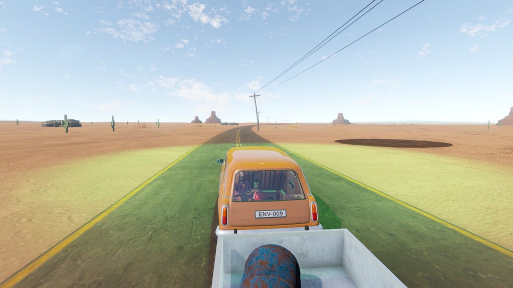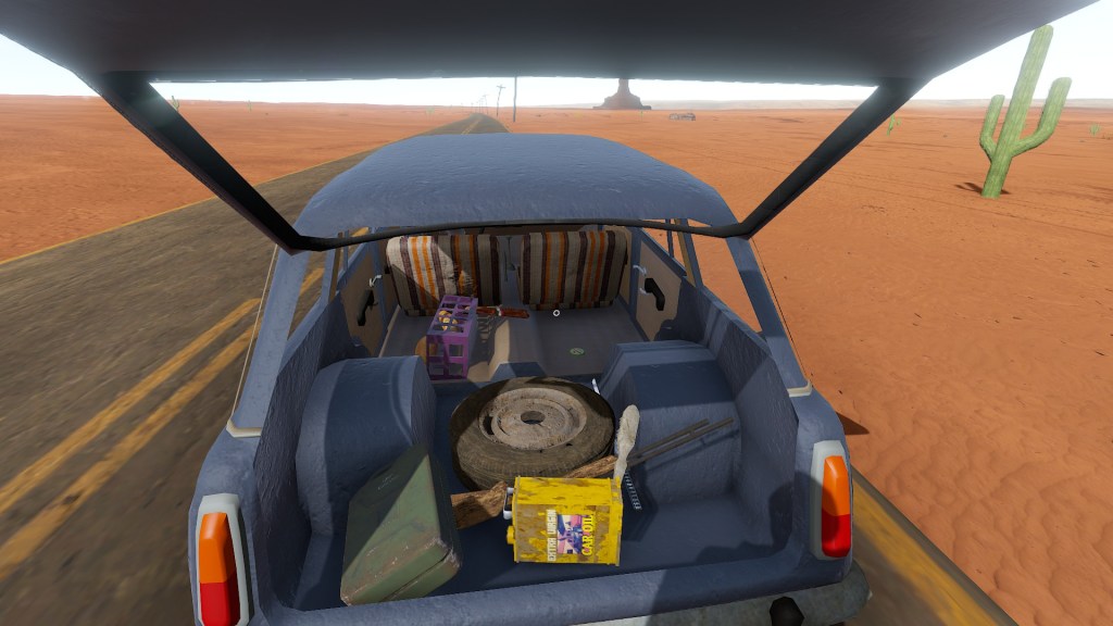 Açlık, susuzluk, çiş, kaka, benzin, su, yağ ve can. Bu değerler her şeyiniz The Long Drive’da. Yedin mi? Tuvaletini yapacaksın ki, karakter tekrar yemek yiyebilsin. (Küçükken sorguladığım bir ikilemin, oyunda hayat bulmuş olması komiğime gitti açıkçası.) Arabanın benzini mi bitiyor? Yanarız valla, çölün ortasında kalır ölürüz. Peki bunları nasıl yeniliyoruz? The Long Drive’ın dünyası süprizlerle dolu bir dünya. Rastgele oluşuyor, sınırı yok ve tamamen şansınıza. Yol üstünde karşılaştığımız binalardan topladığımız eşyalarla hayatta kalmaya çalışıyoruz. Düşmanlarımız da var tabii, bizi tatlı sözlerle kandırıp yemeye çalışan zombiler ve radyoaktif tavşanlar, eşya toplama süreçlerimizi zorlaştırmaya çalışıyor. Pek beceremiyorlar ama, genellikle düşmanımız olma konusunda pek başarılı değiller. Asıl düşmanımız, başta saydığım değerle ve yoldaki kocaman kayalar. Yahu arkadaş, kim koyuyor yolun ortasına bu kayaları ya? Oyunun mekaniklerini özetlediğime göre, hikayemize devam ediyorum.
