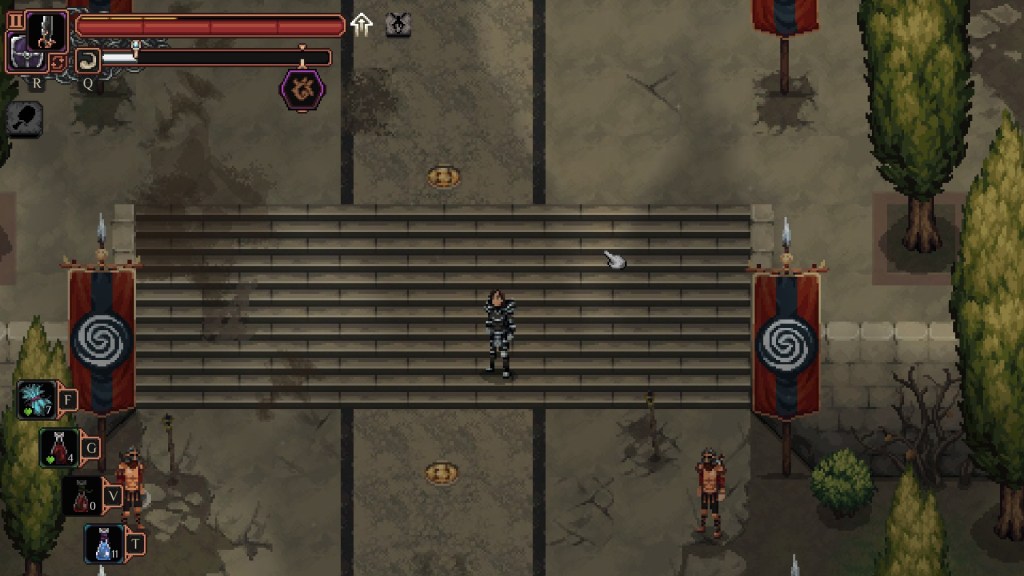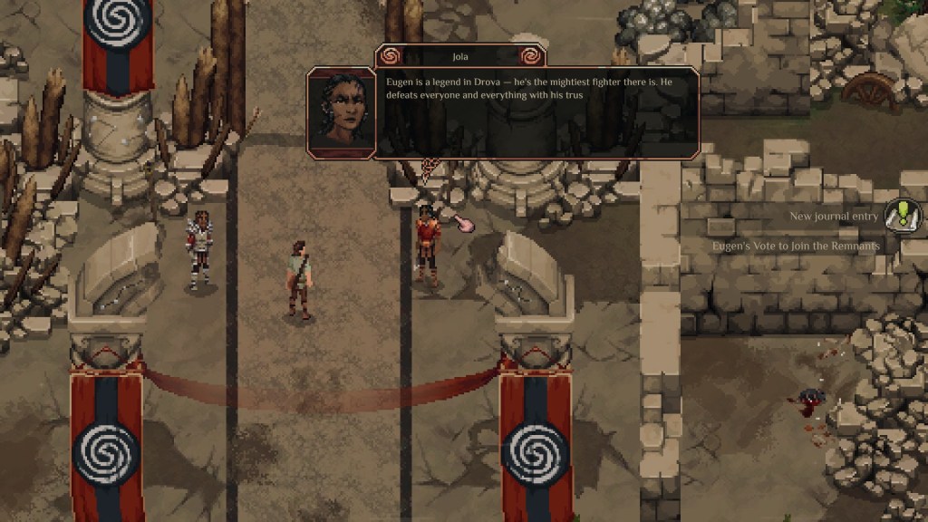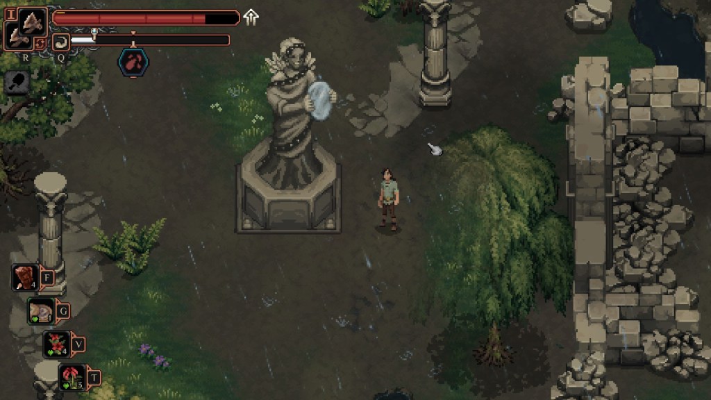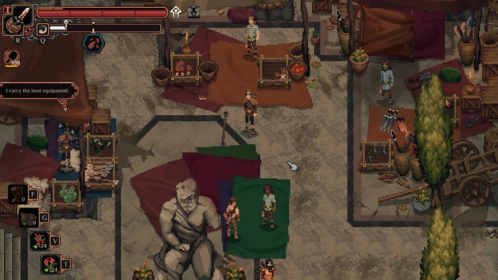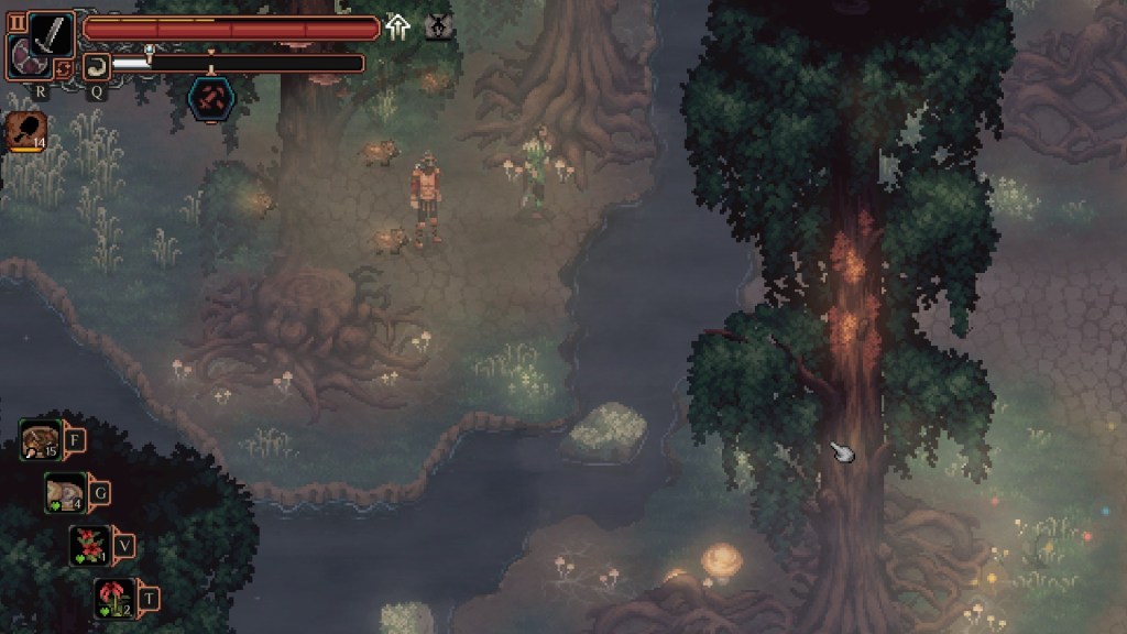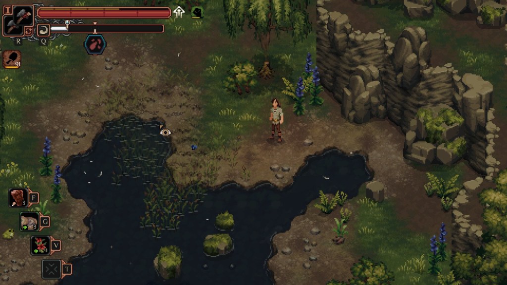 Öncelikle tutku projesi olduğu her yerinden belli olan bu oyunun görselliği ile ilgili konuşmak istiyorum. Pixel art bir oyunu ilk defa oynamıyorum elbette ama, Drova gerçekten büyüleyici bir evren yaratarak aklıma uzun süreler kazanacak bir Pixel art örneği sunuyor. Oluşturdukları haritalardaki detaylar, kırılabilen eşyalar ve etkileşime geçilebilen çevre detayları ile, adeta oyuncuyu haritaya yerleştiriyor. Bu çevre detayları ve ortamlara gösterilen özen kesinlikle oyunun güçlü yanlarından. Kullanılan renkler sayesinde oyunun başında ne kadar uzun süre kalırsam kalayım, asla içim daralmadı. Etrafı seyretmekten her zaman keyif aldım ve gezinmekte olduğum haritalardan ayrılmak istemedim adeta.